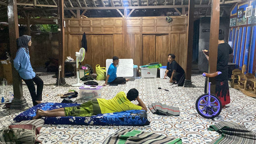 人間ノリ巻き、Lapis、Wedang、Ingkungをそれぞれ4つずつ、計16個を2週間以内に制作するのは量的にもとてもハードルが高い制作だった。Kampung Lali Gadgetのメンバーはもちろん、インターンシップに来ていた大学生にも助けていただき、約2週間で制作した。「人間ノリ巻き」パートでは、制作方法は知っているけれども同じ材料がない中で既存の作品の体験に近づけるための苦労、他の3つは誰もが初めて作るからこそ「どのように作るのか」「どう安全面を確保した状態で楽しんでもらえるのか」の両面から議論を重ねて制作した。